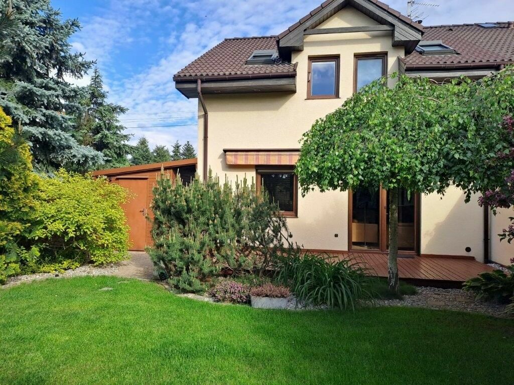 Powierzchnia użytkowa domu wynosi 114,7 m², a całość znajduje się na działce o powierzchni 400 m² z pięknie zagospodarowanym ogrodem.