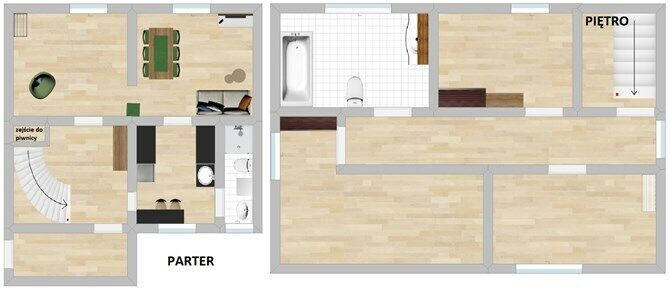 Dom 2 piętrowy - na parterze kuchnia, łazienka z prysznicem,